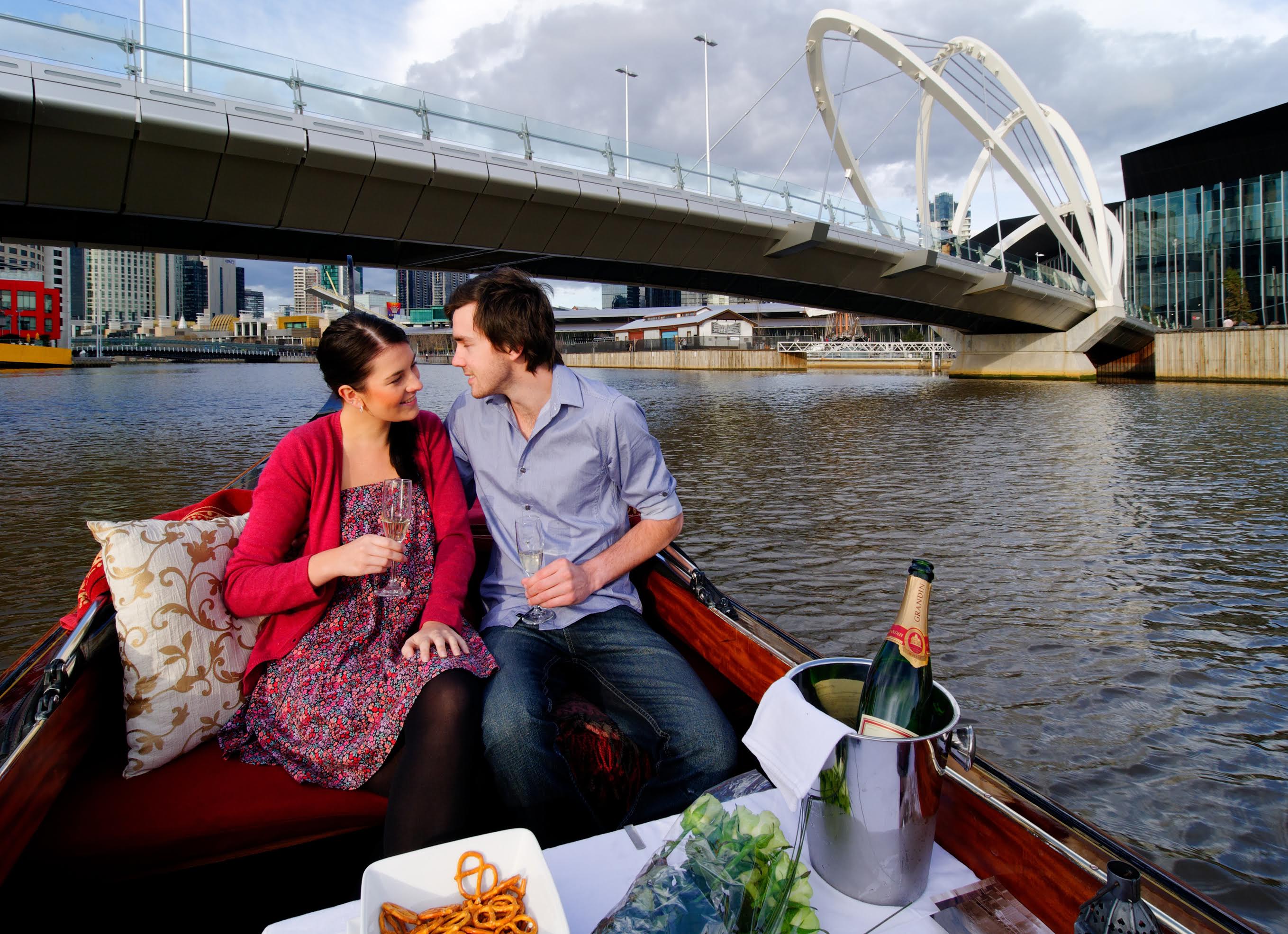 For romantic on-water enjoyment, look no further than the gondolas that ply the Lower Yarra from Yarra's Edge Marina. They can also pick-up at Crown and Southgate landings. Add a couple of bottles of bubbly and a platter of gourmet goodies to your booking and you're sure to create a swoon that would woo even the most reluctant of hearts.
